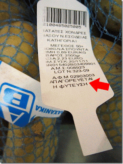 ...Απαγορεύεται η φύτευση ,εξαιτίας του ότι η «ράτσα» της πατάτας ανήκει μαζί με τα δικαιώματά της σε κάποια εταιρεία ή οποία απαγορεύει την αναπαραγωγή της, κάτι σαν ΑCTA διατροφική, το λεγόμενο «Codex Alimentarius»,βάσει του οποίου θα απαγορεύεται μελλοντικά η αναπαραγωγή «τέτοιου τύπου» με κατοχυρωμένη πατέντα αγροτικών προϊόντων.